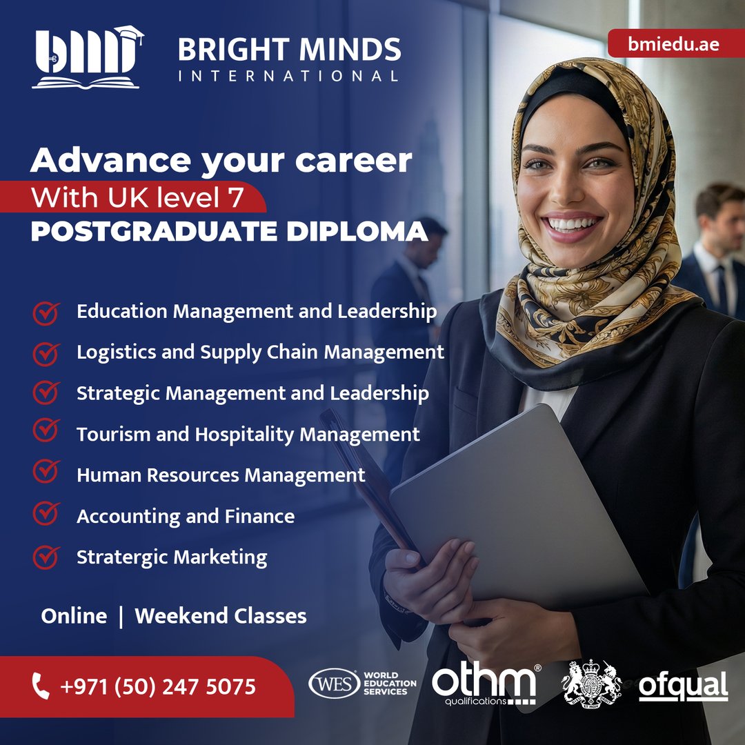Bright Minds International, commonly abbreviated as BMI, is a leading education provider in the United Arab Emirates. BMI is best known for empowering students and working professionals alike with globally recognized qualifications. We partner with reputed universities to deliver flexible, career-focused programmes designed to help you grow, advance and succeed.